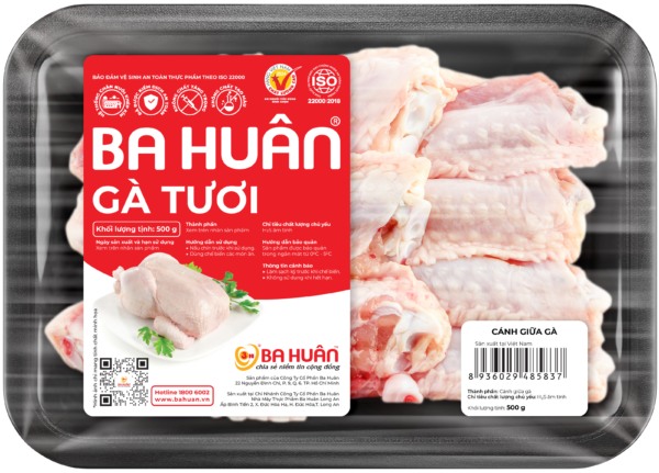 Cánh gà Ba Huân được pha lóc từ những con gà đạt chuẩn sạch, được sản xuất và đóng gói đạt tiêu chuẩn HACCP-ISO 22000: công nghệ bảo quản thịt mát hiện đại, đảm bảo chất lượng thịt tươi ngon, vẹn nguyên dinh dưỡng đến tay khách hàng.