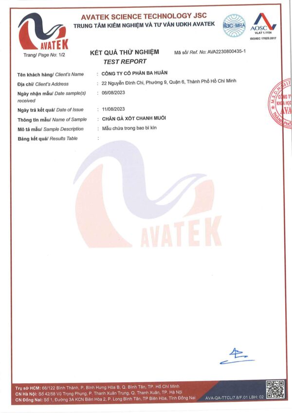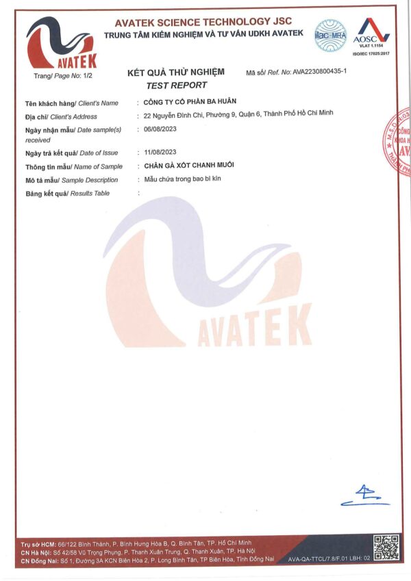 Xốt chanh muối cân bằng giữa vị chua của chanh và vị mặn của muối, sự kết hợp hoàn hảo đi cùng với chân gà tươi ngon từ trang trại Ba Huân, tạo nên một món ăn đầy hương vị, thơm ngon, tươi mát, lại đảm bảo an toàn cho người dùng.