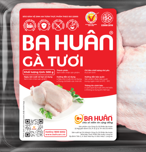 Đùi gà góc tư Ba Huân được sản xuất và đóng gói đạt tiêu chuẩn HACCP-ISO 22000: công nghệ bảo quản thịt mát hiện đại, đảm bảo chất lượng thịt tươi ngon, vẹn nguyên dinh dưỡng đến tay khách hàng.