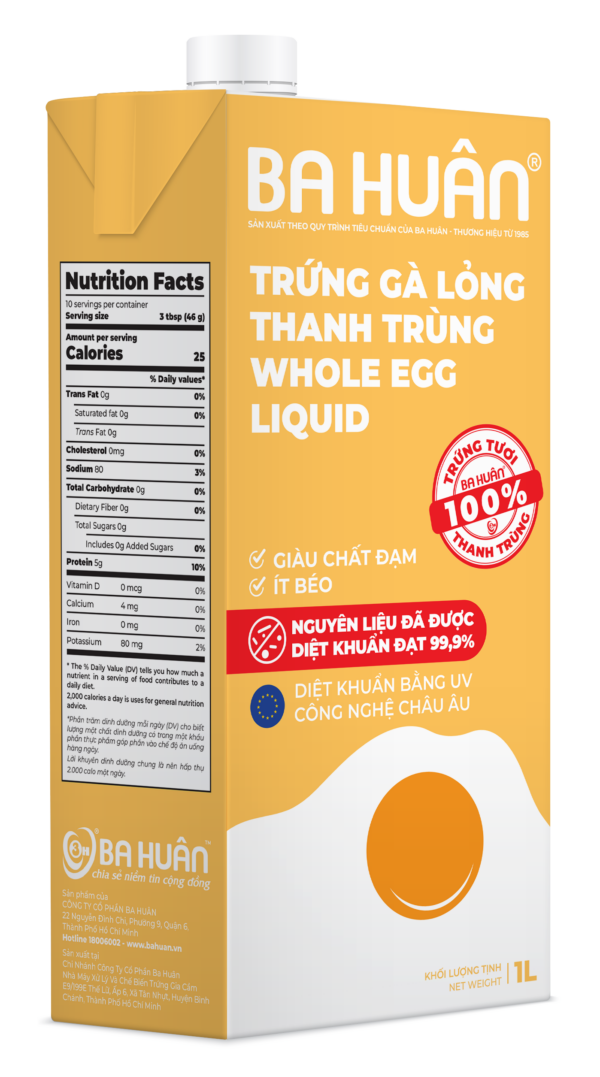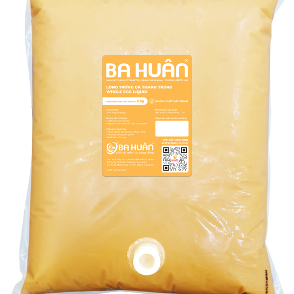 Lòng trứng gà thanh trùng Ba Huân được chế biến từ trứng gà tươi, trải qua quy trình thanh trùng hiện đại, giảm số lượng mầm bệnh, vi sinh vật gây hại như vi khuẩn, virus, nấm men, nấm mốc.