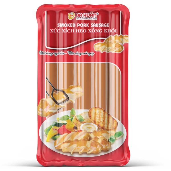 Xúc xích Xông khói của Ba Huân sản xuất từ hệ thống được kiểm soát chặt chẽ theo nguyên tắc chuỗi khép kín “Thức ăn chăn nuôi – Trang trại chăn nuôi – Nhà máy chế biến thực phẩm” (Feed-Farm-Food) nhằm mang lại giá trị dinh dưỡng cao nhất và vệ sinh an toàn thực phẩm đến người tiêu dùng. Xúc xích được xông khói bằng gỗ sồi nhập khẩu từ châu u, đem lại hương vị thơm ngon chuẩn vị.