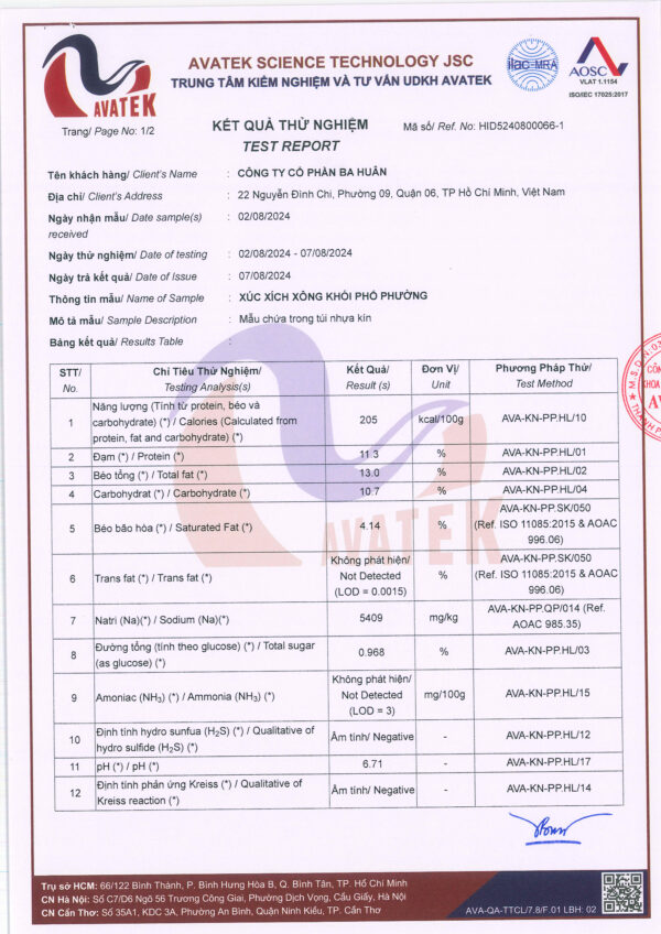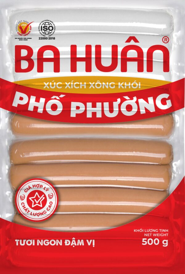 Xúc xích Xông khói của Ba Huân sản xuất từ hệ thống được kiểm soát chặt chẽ theo nguyên tắc chuỗi khép kín “Thức ăn chăn nuôi – Trang trại chăn nuôi – Nhà máy chế biến thực phẩm” (Feed-Farm-Food) nhằm mang lại giá trị dinh dưỡng cao nhất và vệ sinh an toàn thực phẩm đến người tiêu dùng. Xúc xích được xông khói bằng gỗ sồi nhập khẩu từ châu u, đem lại hương vị thơm ngon chuẩn vị.